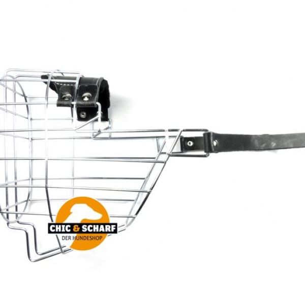 Verzinkter Chopo Drahtmaulkorb mit schwarzen Lederriemen und Filz unterlegtem Nasenpolster