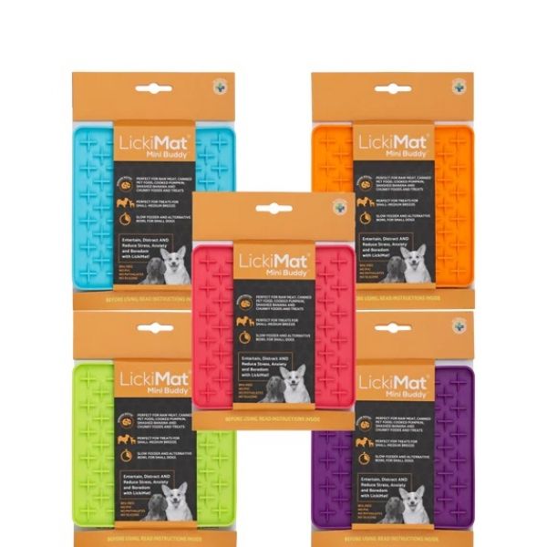Für eine unterhaltsame Interaktion mit Haustieren stehen drei Designs zur Verfügung. Lickimat Buddy mit seinem Kreuz-Labyrinth-Design ist perfekt für dicke, klebrige Leckereien wie Doggy-Erdnussbutter, Nassfutter oder matschige Kekse.